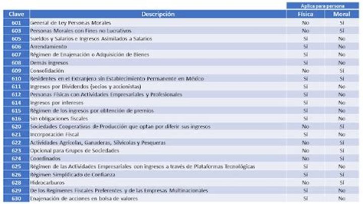 Este campo contendrá una clave vigente del catálogo c_RegimenFiscal: