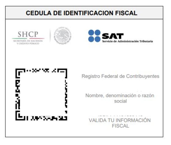 Te permite generar tu Cédula de Identificación Fiscal, mediante la cual acreditas tu RFC. Contiene un código de barras bidimensional (QR) que al ser escaneado por un dispositivo electrónico inteligente, muestra la siguiente información: