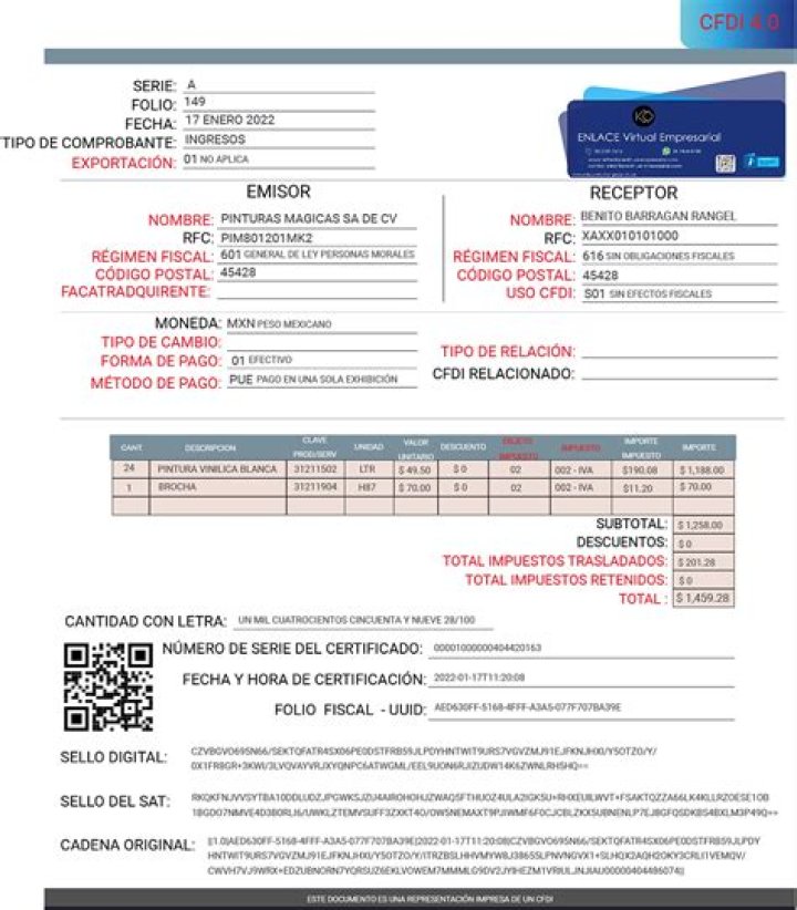 - XAXX010101000 -- RFC genérico nacional