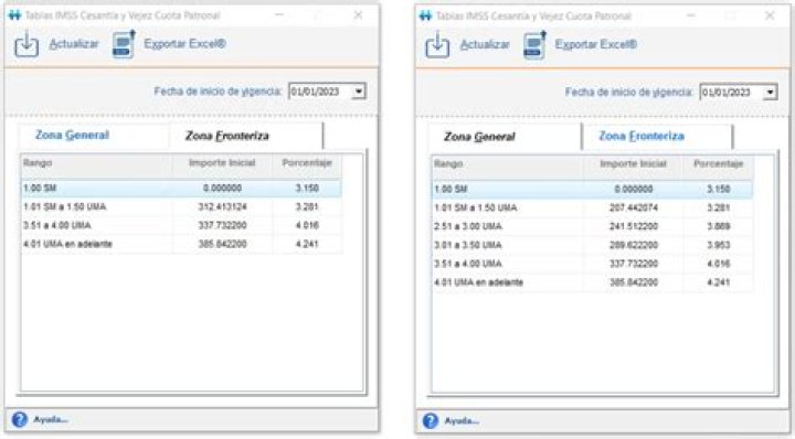 En los escenarios que los empleados cumplan su próximo aniversario laboral en el ejercicio 2023, se calculará la parte proporcional que corresponde al ejercicio 2022 con base a la tabla Prestaciones de Ley en vigor del 01/01/1970, más, la parte proporcional correspondiente al ejercicio 2023 con base a la tabla Prestaciones de Ley en vigor del 01/01/2023.