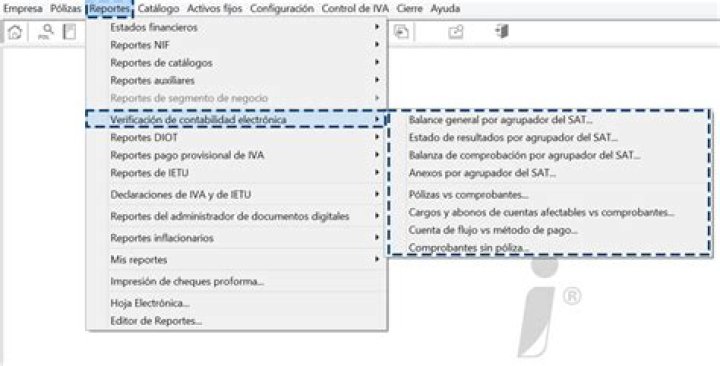 Para verificar esta gama de reportes ve al menú Reportes, posteriormente al submenú Verificación de contabilidad electrónica.