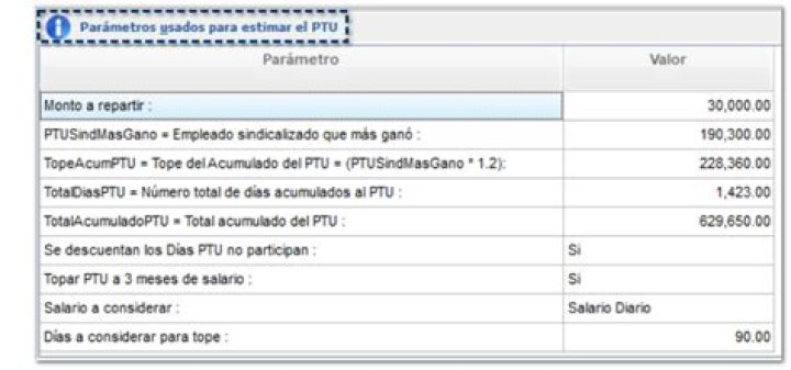 A partir de ahora, podrás consultar cómo se calcula el Tope de PTU con base a los parámetros previamente definidos: